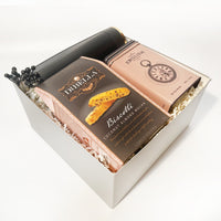 • Included: A temperature control bottle, a biscotti box, and English tea